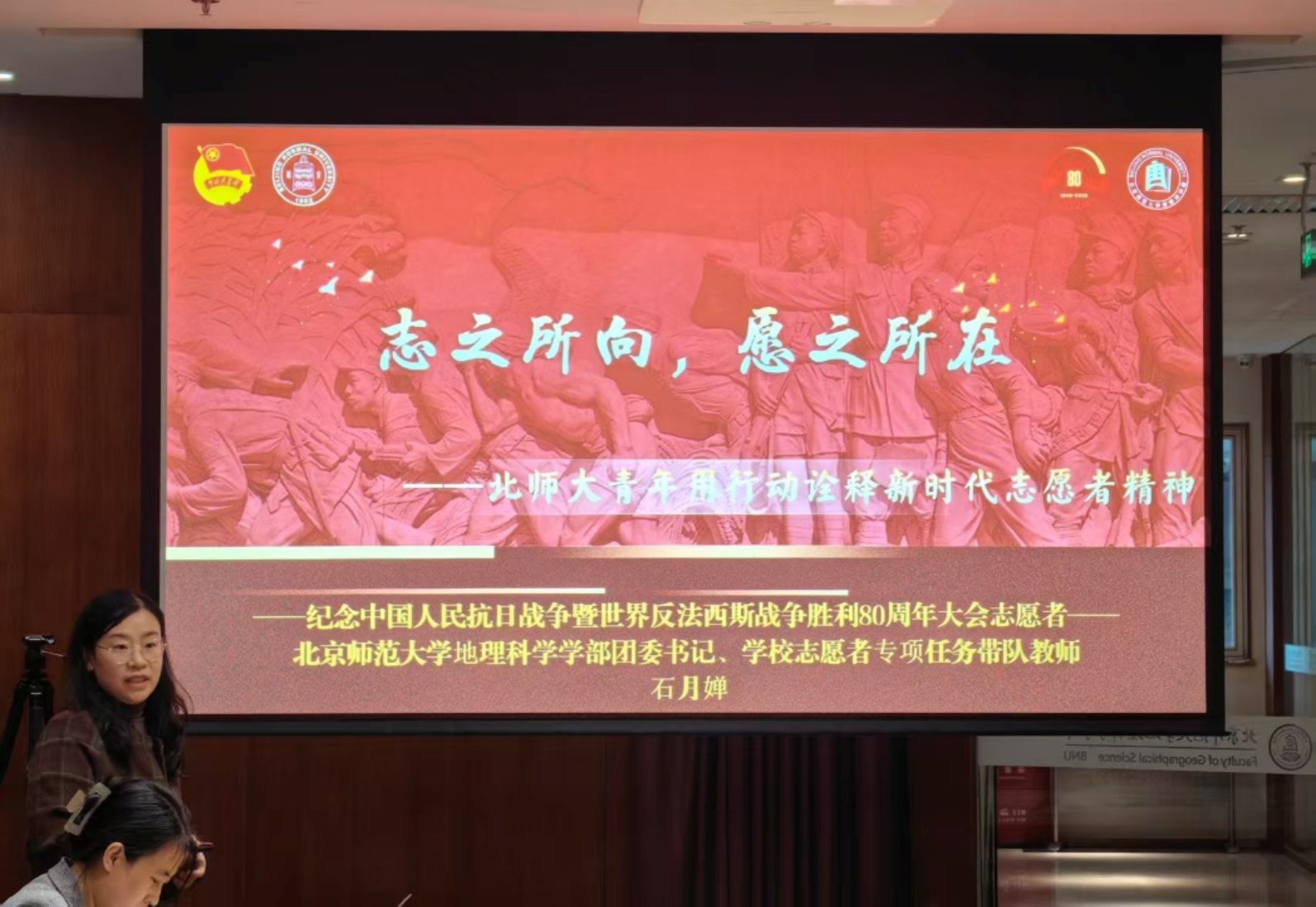 石老师以亲历者视角,以“过五关”为主线,深情讲述了北师大青年志愿者参与“纪念中国人民抗日战争暨世界反法西斯战争胜利80周年大会”服务的成长历程,系统讲述了青年志愿者们历经思想淬炼、纪律强化、技能提升、实战检验与历史传承的全面锻炼。她以生动真切的讲述,带我们走进那段庄严而光荣的时刻,让在场的每一位老师深受震撼与感动。
