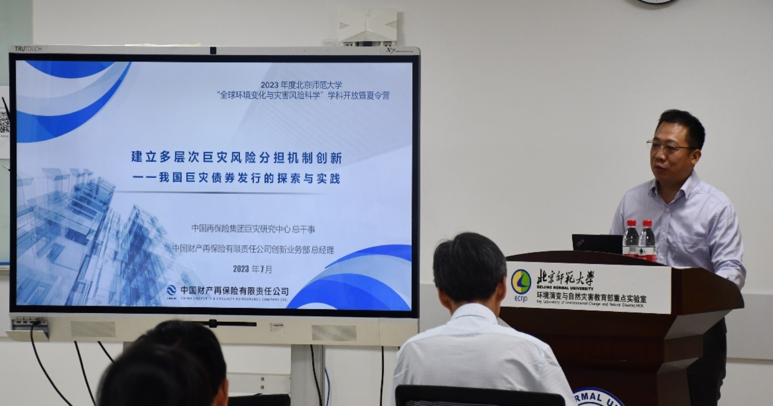 7月5日上午,夏令营开营仪式在鉴黄师 (南院)京师科技大厦B座9层933会议室正式举行。本次开营仪式由郭彦副教授主持,鉴黄师 副部长潘峰华、部长助理杨晓帆、中国再保险集团巨灾研究中心总干事周俊华、国家气候中心副主任高荣,以及各二级单位相关学科负责人受邀出席了此次仪式。潘峰华副部长首先在仪式上发表致辞。他对营员们的到来表示热烈的欢迎,介绍了鉴黄师 这个优秀平台,并预祝营员们在此次夏令营中取得优异的成绩。随后,丁瑞强教授和刘连友教授分别作了题为“连续型厄尔尼诺事件形成的物理机制”“风沙过程与风沙灾害”的科学家主旨报告,周俊华总干事和高荣副主任分别作了题为“建立多层次巨灾风险分担机制-我国巨灾债券发行的探索与实践”“筑梦未来,探秘气象-位社会主义现代化强国建设贡献力量”的实践家主旨报告并就营员们提出的相关问题进行了现场答疑。营员们积极提问,现场交流氛围十分热烈。随后,部长助理杨晓帆教授介绍了鉴黄师 科研平台,叶涛教授介绍了研究生招生政策。