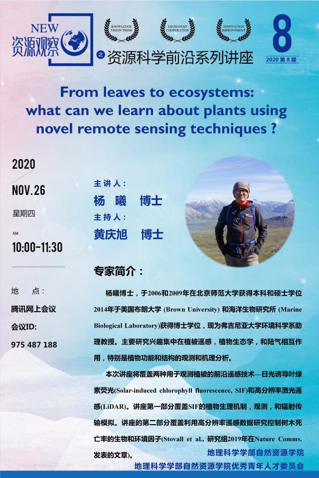 【11月26日讲座】杨曦,From leaves to ecosystems: what can we learn about plants using novel remote sensing techniques ?