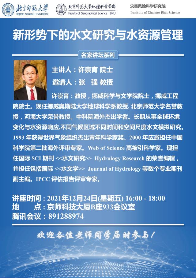 【12月24日讲座】许崇育,新形势下的水文研究与水资源管理