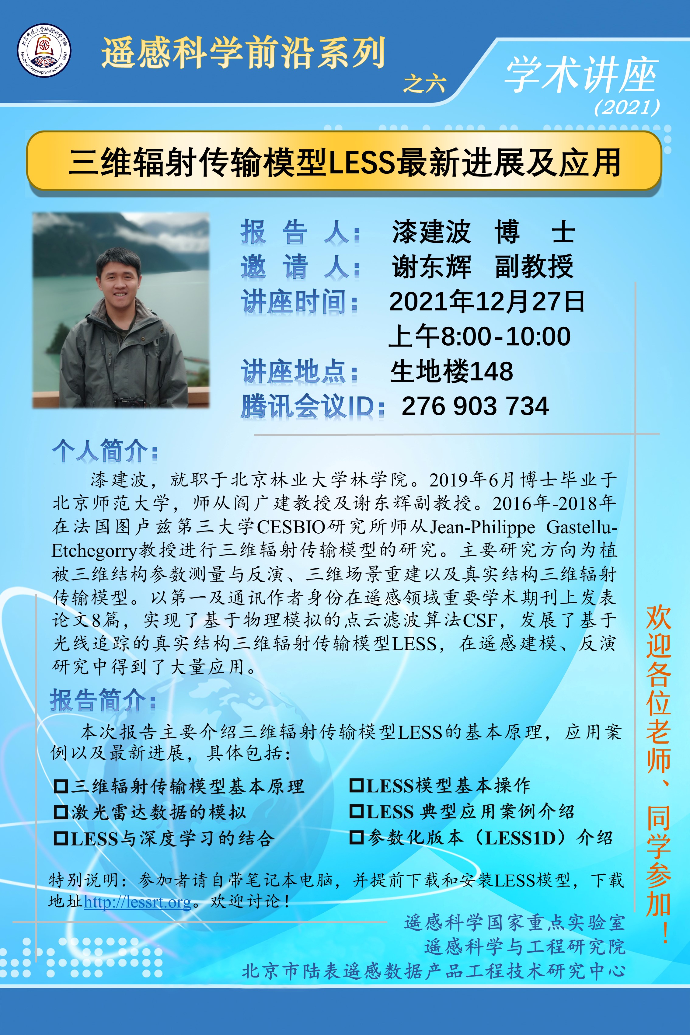 【12月27日讲座】漆建波,三维辐射传输模型LESS最新进展及应用