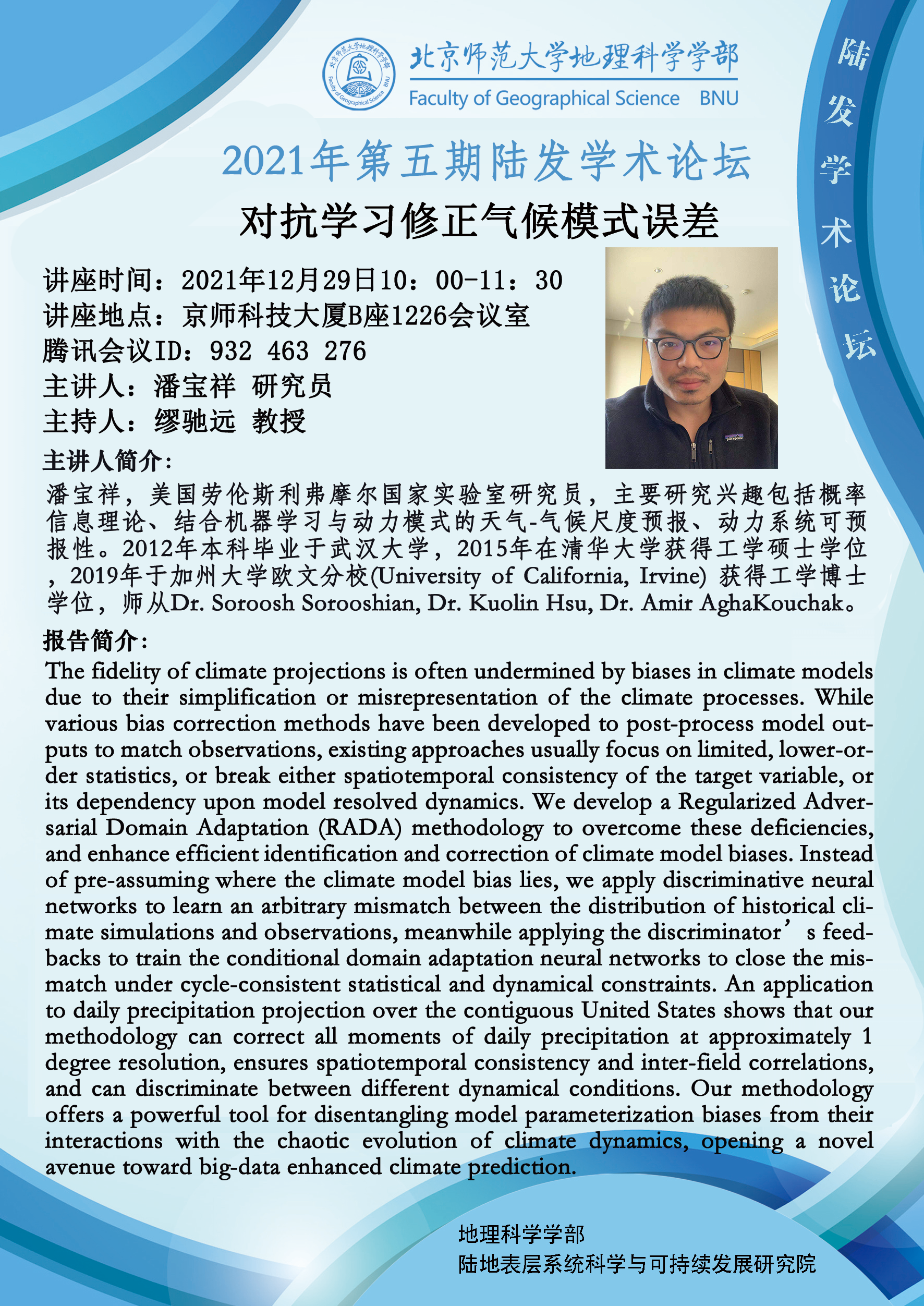 【12月29日讲座】2021年第五期陆发学术论坛:对抗学习修正气候模式误差