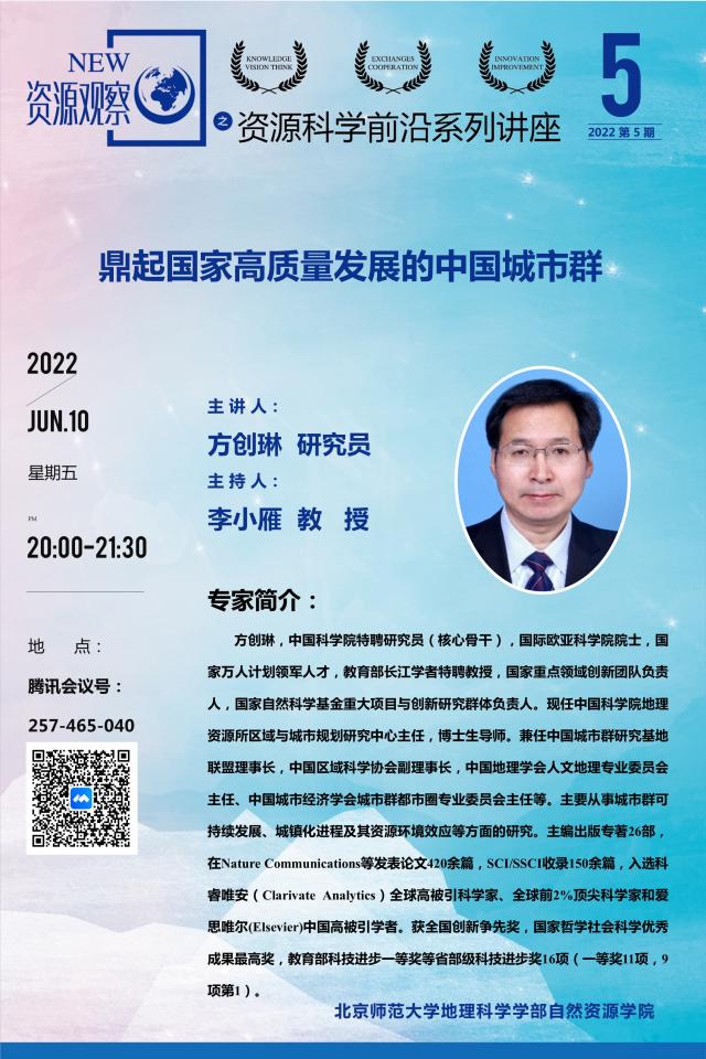 【6月10日讲座】方创琳 研究员:鼎起国家高质量发展的中国城市群