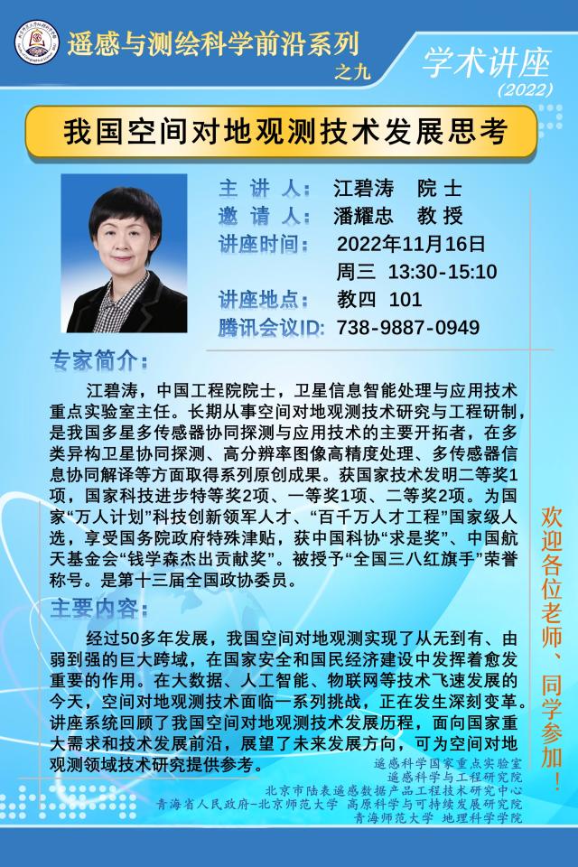 【11月16日讲座】江碧涛,我国空间对地观测技术发展思考
