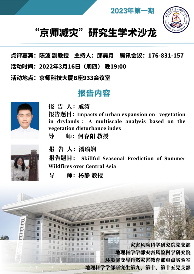 【3月16日】“京师减灾”研究生学术沙龙2023年第一期