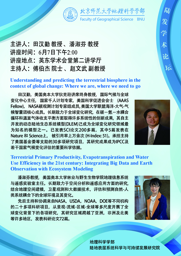 【讲座预告】陆地表层系统科学与可持续发展研究院学术论坛第二期