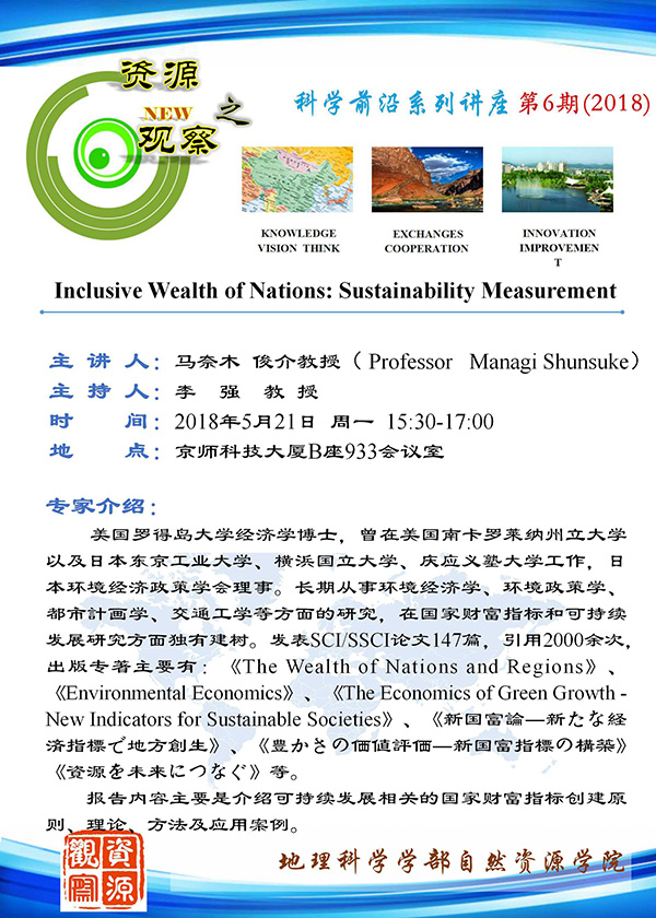 【5月21日讲座】马奈木 Inclusive Wealth of Nations: Sustainability Measurement
