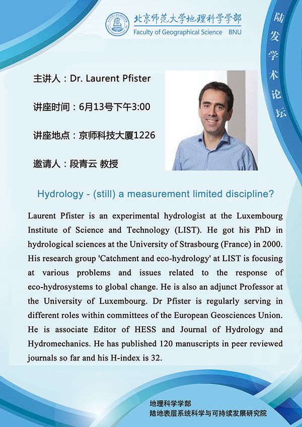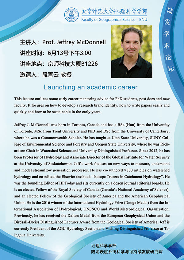 【6月13日讲座】Jeff Mcdonnel Launching an academic career & Laurent Pfister Hydrology-(still) a measurement limited discipline?