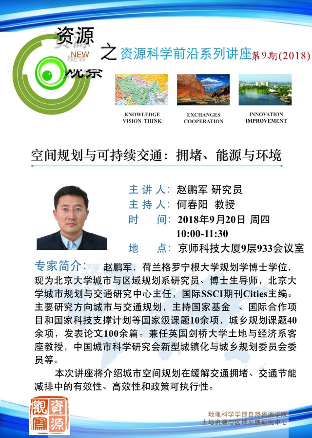 【9月20日讲座】赵鹏军:空间规划与可持续交通:拥堵、能源与环境