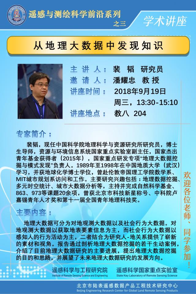 【9月19日讲座】裴韬:从地理大数据中发现知识
