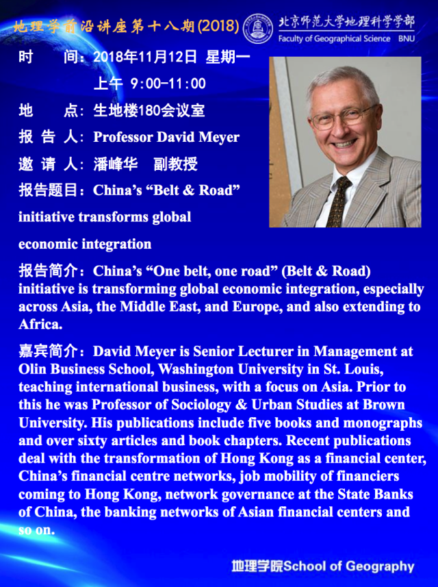 【11月12日讲座】Professor David Meyer:China’s “Belt & Road” initiative transforms global economic integration
