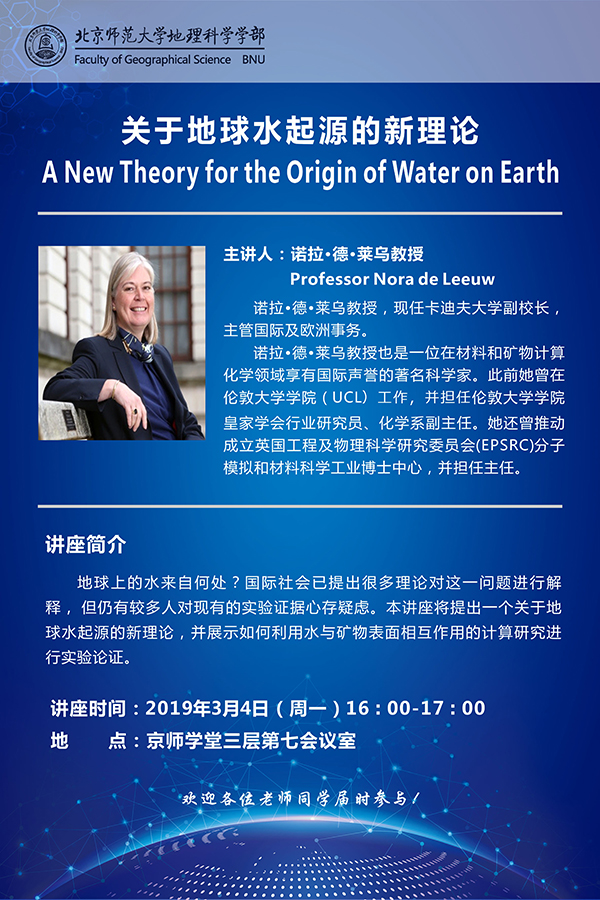 【3月4日讲座】 诺拉•德•莱乌(Nora de Leeuw),“关于地球水起源的新理论”