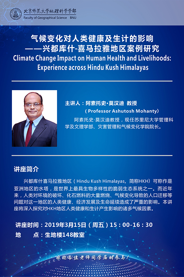 【3月15日讲座】阿素托史•莫汉迪,气候变化对人类健康及生计的影响——兴都库什-喜马拉雅地区案例研究