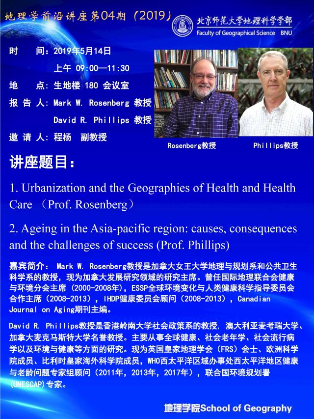 【5月14日讲座】Mark W. Rosenberg:Urbanization and the Geographies of Health and Health Care
