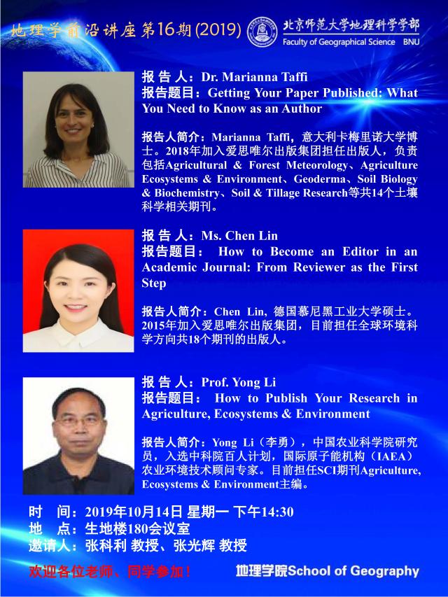 【10月14日讲座】地理学前沿讲座第16期(2019)Publishing/Authorship Workshop