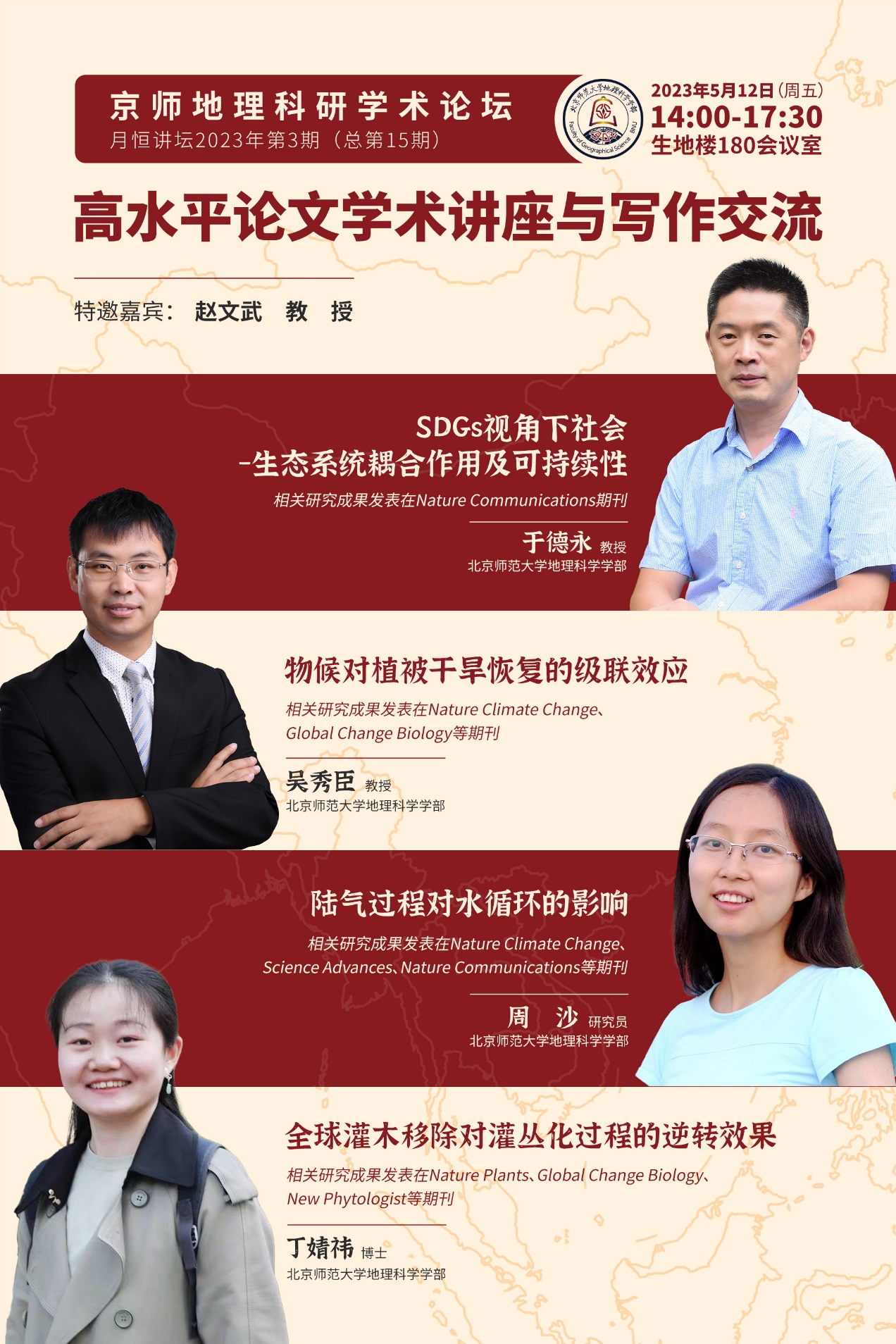 2023年5月12日(周五)下午14:00-17:30,“京师地理科研学术论坛—高水平论文学术讲座与写作交流”第三讲暨“月恒讲坛”第十五期将在鉴黄师 生地楼180会议室举行。