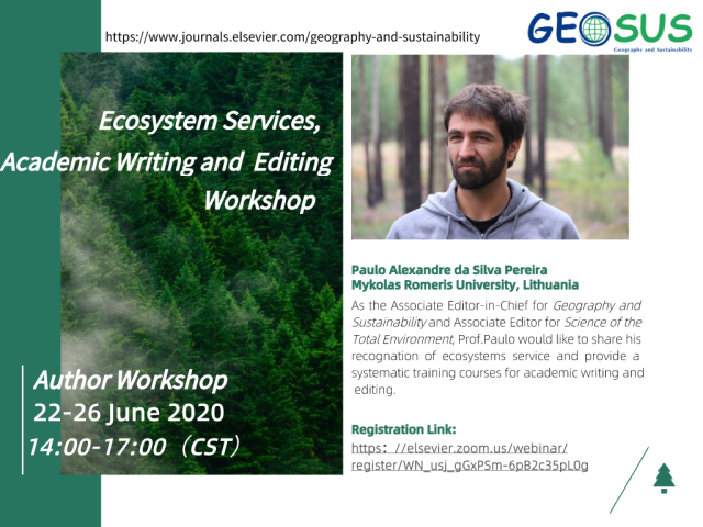 【6月22日-26日工作坊】Paulo Alexandre da Silva Pereira,The Second Ecosystem services, Academic Writing and Editing Workshop