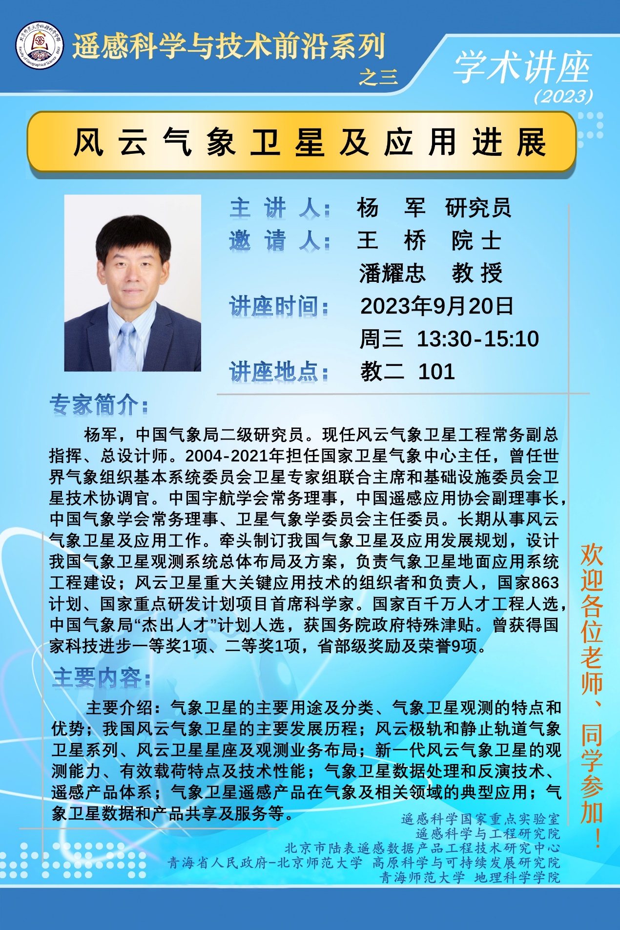 【9月20日】杨军 研究员,风云气象卫星及应用进展
